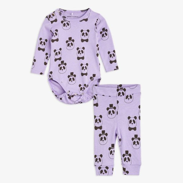 Baby bundle containing a long sleeve bodysuit and leggings with our Panda print, made from 100 % GOTS certified organic cotton. The bodysuit features snap buttons at shoulder and crotch for easy dressing. Leggings designed with a soft elastic waist and cuffs at leg ends.
