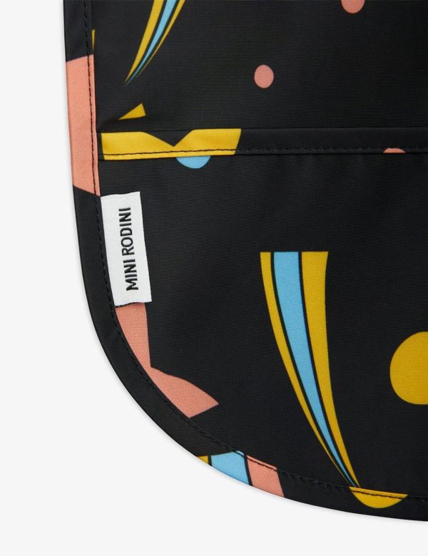 All over Space print, designed with a pocket along the bottom edge and straps to tie around the neck.