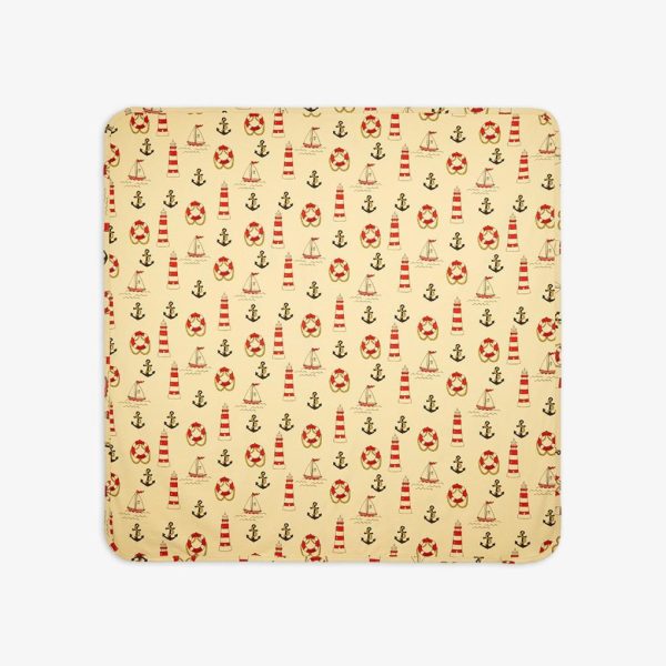 Upcycled blanket with an all over Lighthouse print, made from 100 % GOTS certified organic cotton. The blanket features sewn on bindings all around the edges and measures 110 x 110 cm.