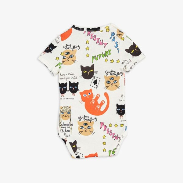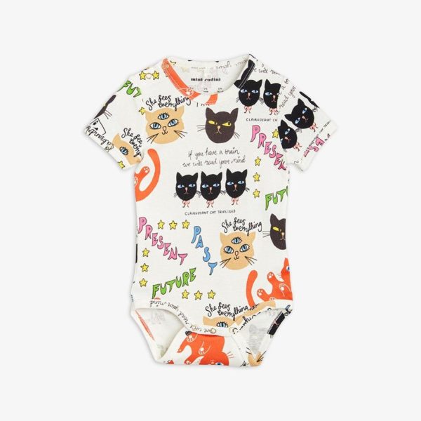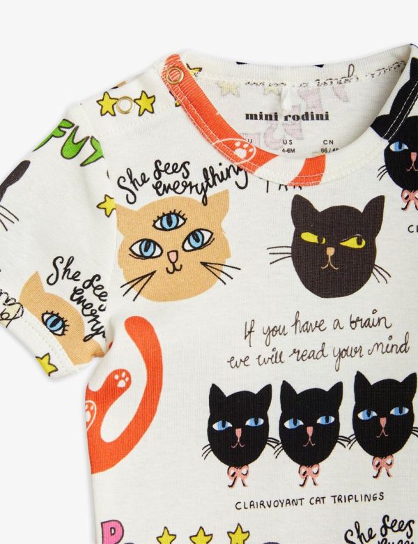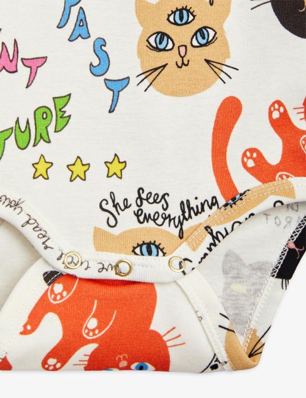 Body with Clairvoyant Cats print made from 100 % GOTS certified organic cotton. Designed with snap buttons at the shoulder and crotch for easy dressing.