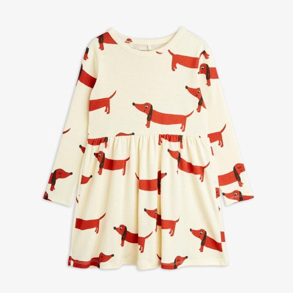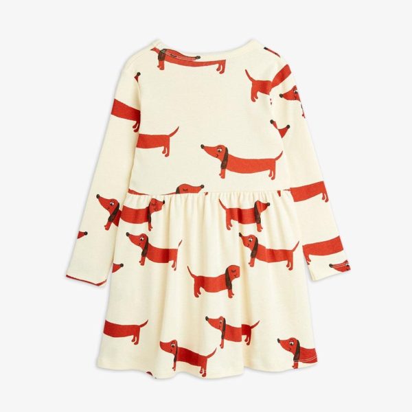 Long sleeve dress with all over Dog print, made in 100 % GOTS-certified organic cotton. Designed with a soft elastic high waist and a flared skirt.