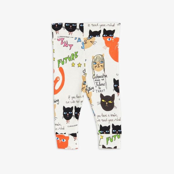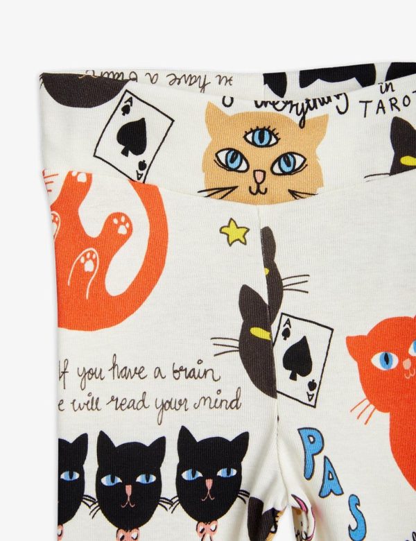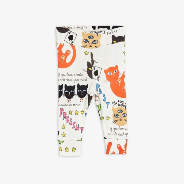 Newborn leggings with Clairvoyant Cats print made from 100 % GOTS certified organic cotton. The leggings are designed in Mini Rodini’s newborn-model. They feature soft cuffs at the ankles and a wide waistband that keeps them in place. The waist and cuffs can be unfolded as the child grows, prolonging the lifespan of the garment.