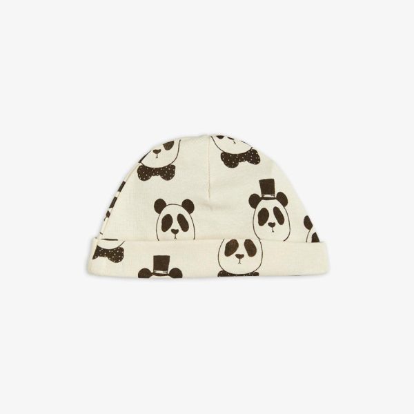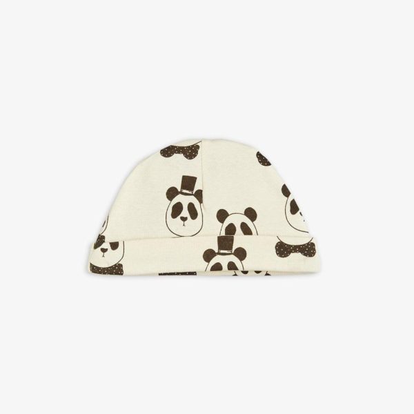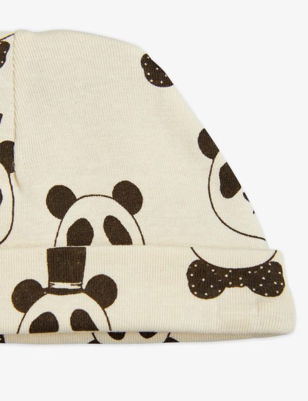 Off white baby beanie with all over Panda print made from 100 % GOTS certified organic cotton. Designed with a folded hem.