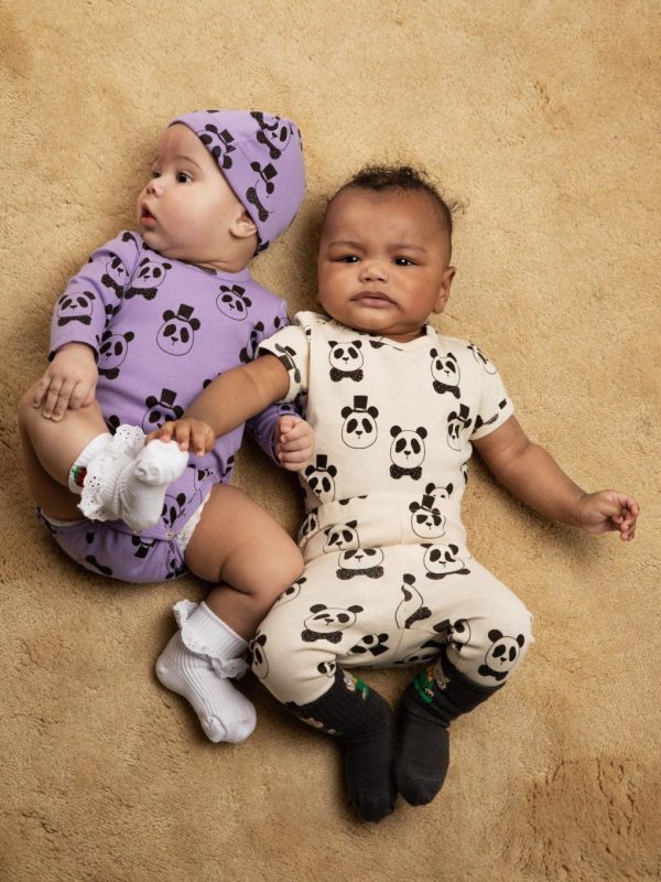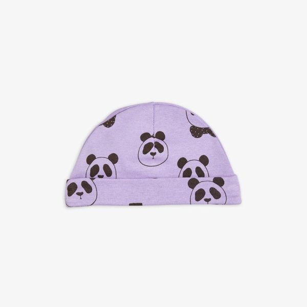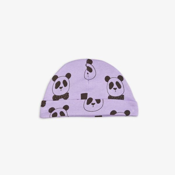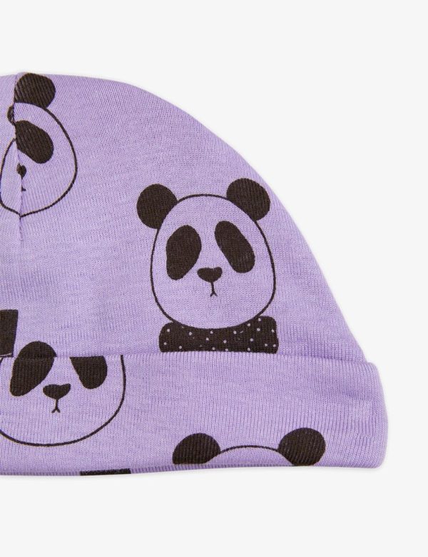 Purple baby beanie with all over Panda print made from 100 % GOTS certified organic cotton. Designed with a folded hem.