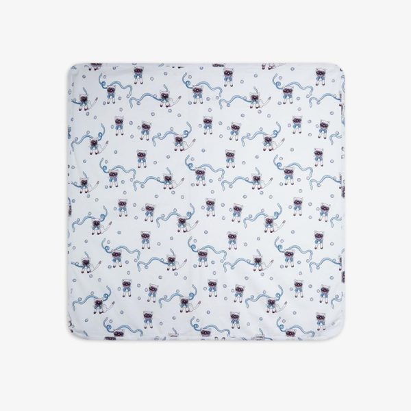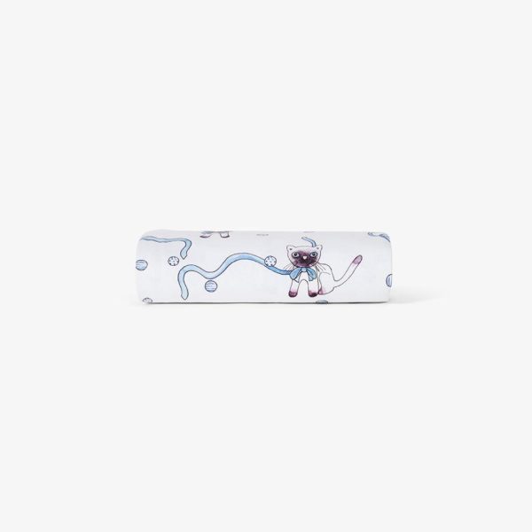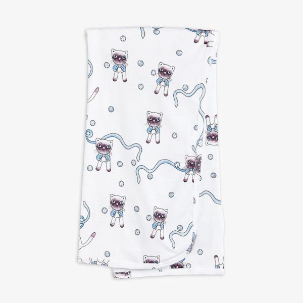 White baby blanket with an all over Siamese Cats print made from GOTS certified organic cotton. All edges have sewn bindings.