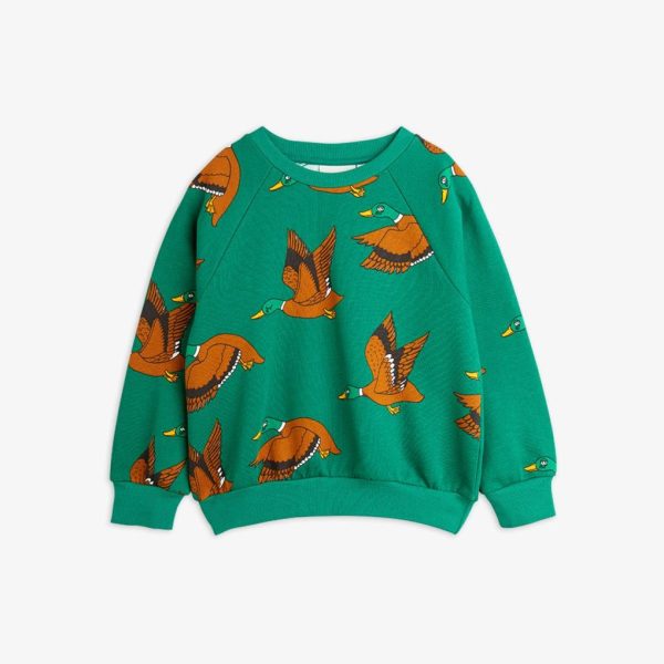 Sweatshirt with all over Ducks print, made from 100 % GOTS certified organic cotton. The sweatshirt is designed with raglan sleeves, a soft brushed inside as well as rib at the neck, sleeve ends and bottom hem. Snap buttons at the shoulder in sizes 56/62–68/74.