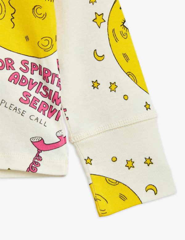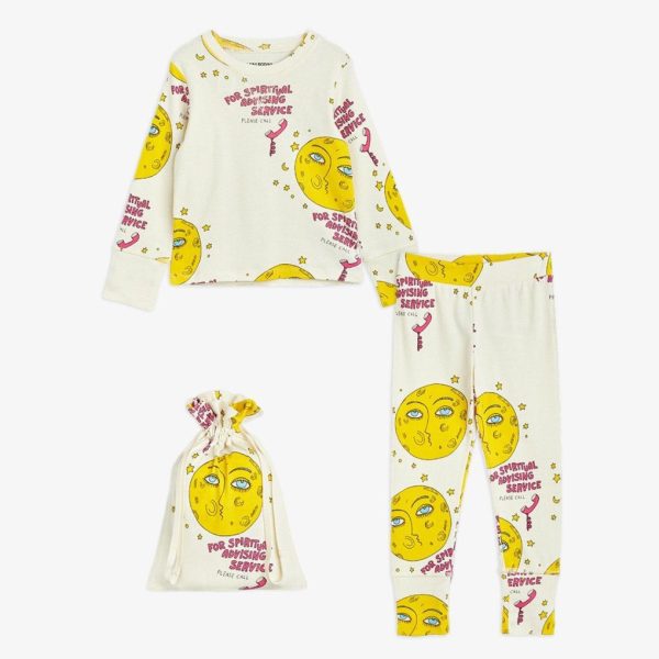 Loungewear set with an all over Moon print consisting of a long sleeve T-shirt and leggings delivered in a drawstring bag, all made from 100 % GOTS-certified organic cotton. The set is designed with elastic neck, cuffs and leg ends. The leggings feature a soft elastic waistband for a comfortable fit.