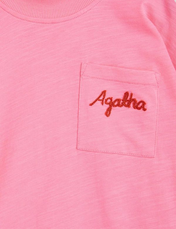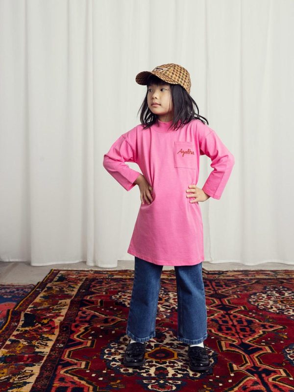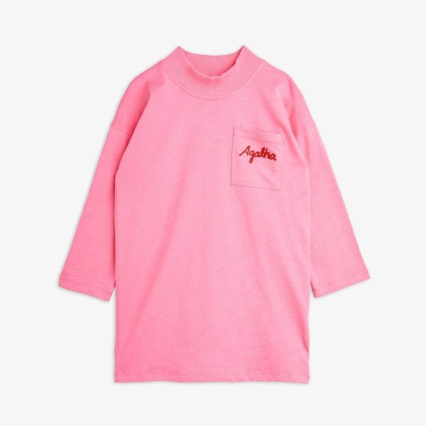 Long sleeve dress with Agatha embroidery, made from 100 % GOTS certified organic cotton. Cut for a relaxed fit with dropped shoulders, and designed with a chunky ribbed neck and a breast pocket.