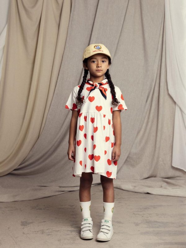 Short sleeve dress with an all over Hearts print, made from 100 % GOTS certified organic cotton. Designed with short sleeves and a ribbed contrasting collar.