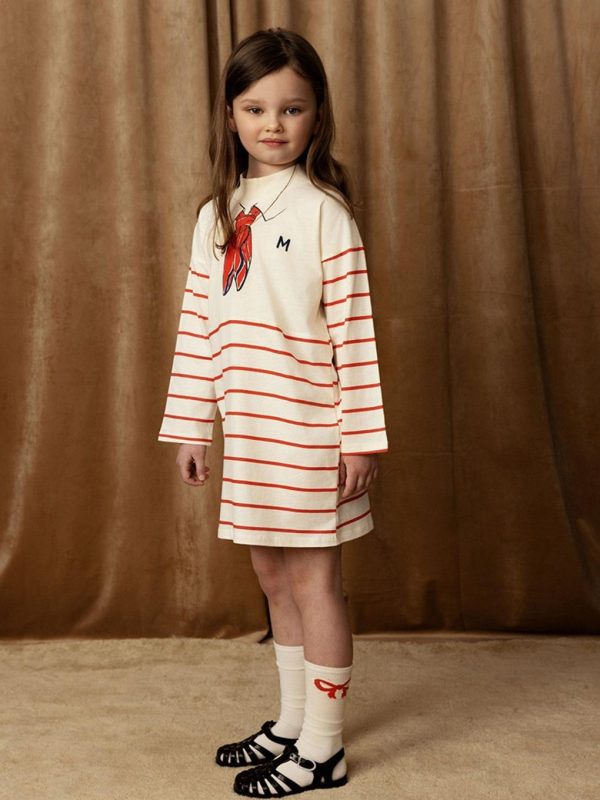 Long sleeved dress made from 100 % GOTS certified organic cotton. Designed with stripe details along arms and skirt