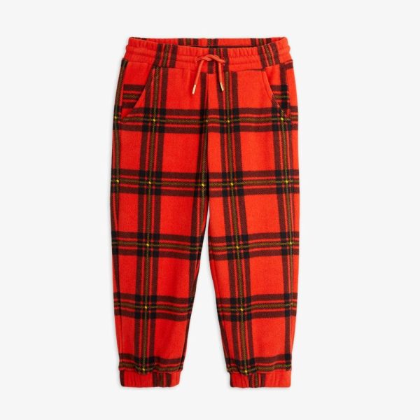Fleece trousers with an all over Check print, made from 100 % recycled polyester. Designed with an elastic drawstring waist, elastic trims, front pockets and a Mini Rodini Panther label on the back.
