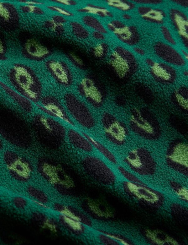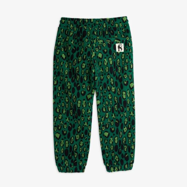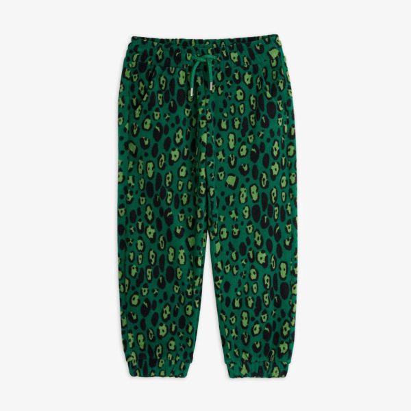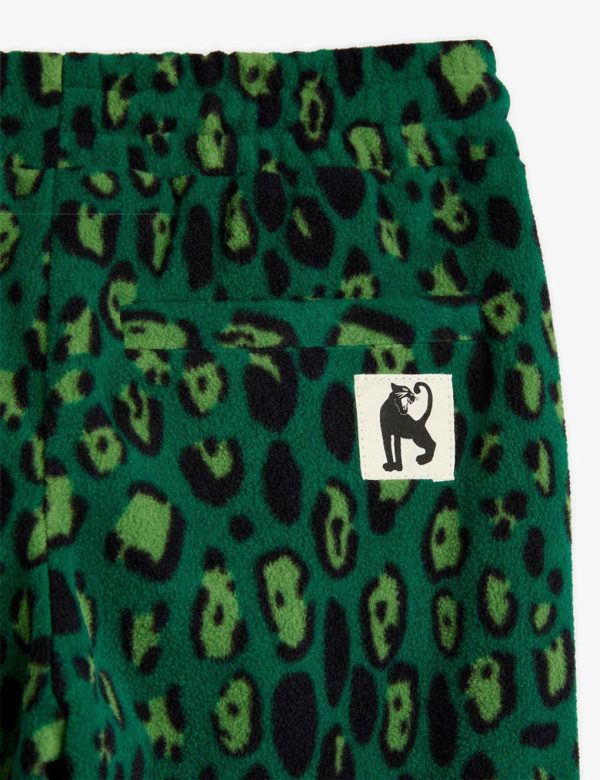 Green fleece trousers made from 100 % recycled polyester with Leopard print. Designed with two side pockets, a fake pocket in the back with a panther label sewn on, as well as soft cuffs by the ankles and an elastic drawstring waist. These trousers can be used all year round, worn separately or under a pair of shell trousers.