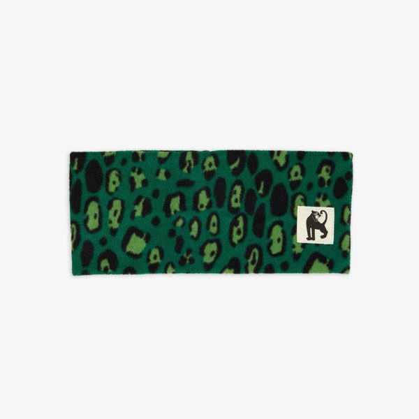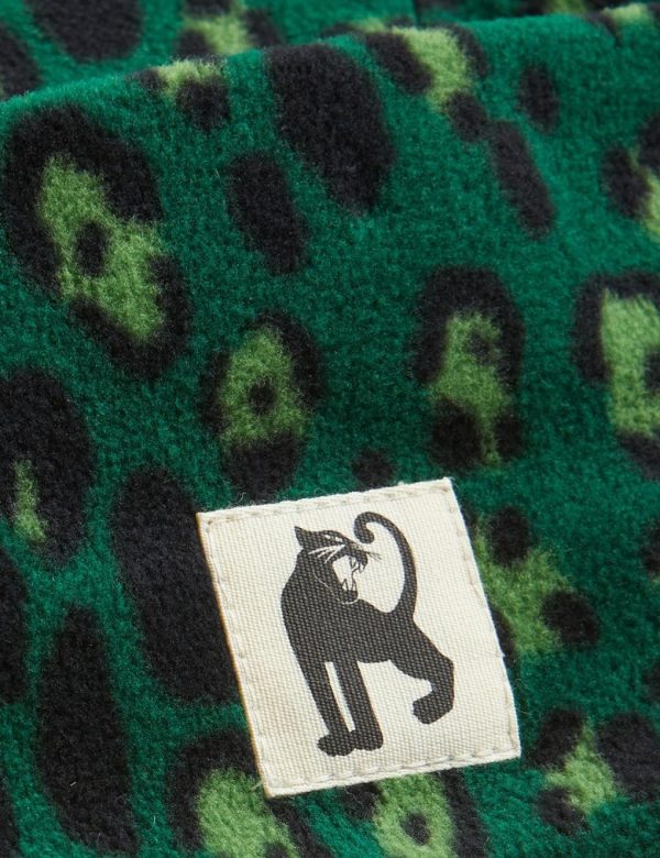 Green kids’ fleece tube with Leopard print made from 100 % recycled polyester.