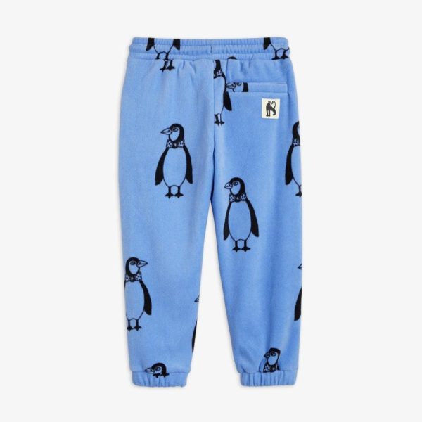 Penguin printed fleece trousers made from 100 % recycled polyester. Designed with an adjustable elastic waistband, side pockets and elastic cuffs. Decorated with a faux rear pocket with a Mini Rodini Panther patch.