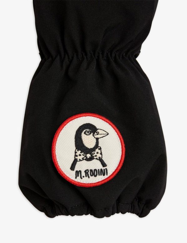 Thermo gloves in black made from 100 % recycled polyester with a twill penguin patch at each wrist, reinforcements at the palm and elastic at both wrists and opening. The gloves are highly breathable and waterproof, made of a functional and heavy-duty shell fabric finished with a more environmentally friendly water repellent BIONIC-FINISH® ECO coating, free from harmful chemicals.