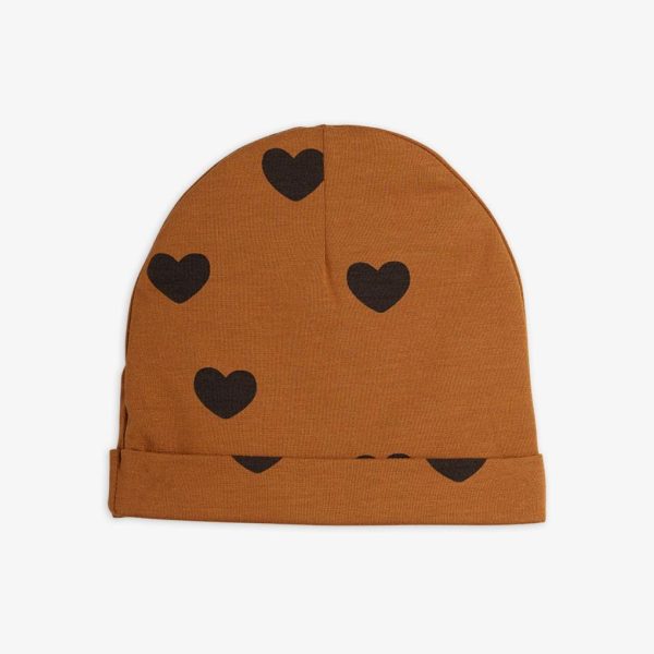 Brown fold up beanie with an all over Hearts print, made in soft TENCEL™ Lyocell with a hint of stretch for comfort. The beanie features a Mini Rodini Panda label.