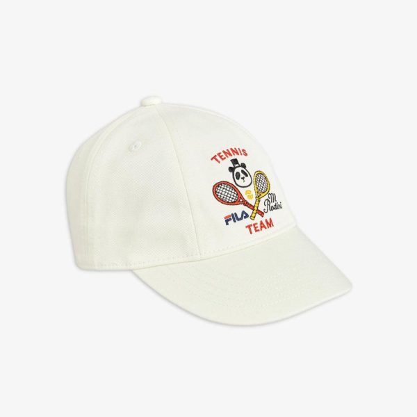 White baseball cap with an embroidered FILA x Mini Rodini tennis motif, made from 100 % organic cotton. Designed with an adjustable strap with metal hardware for the perfect fit.