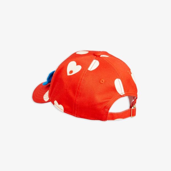 Baseball cap decorated with a sewn on bow and an all over Hearts print, made from 100 % organic cotton. The cap features an embroidered M.Rodini logo on the back and is adjustable with a metal buckle for the perfect fit.