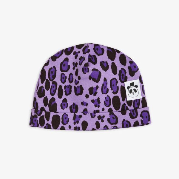 Soft beanie with Leopard print, made from 100 % GOTS certified organic cotton. The beanie features a folded hem and a sewn-on Mini Rodini Panda logo at the front.