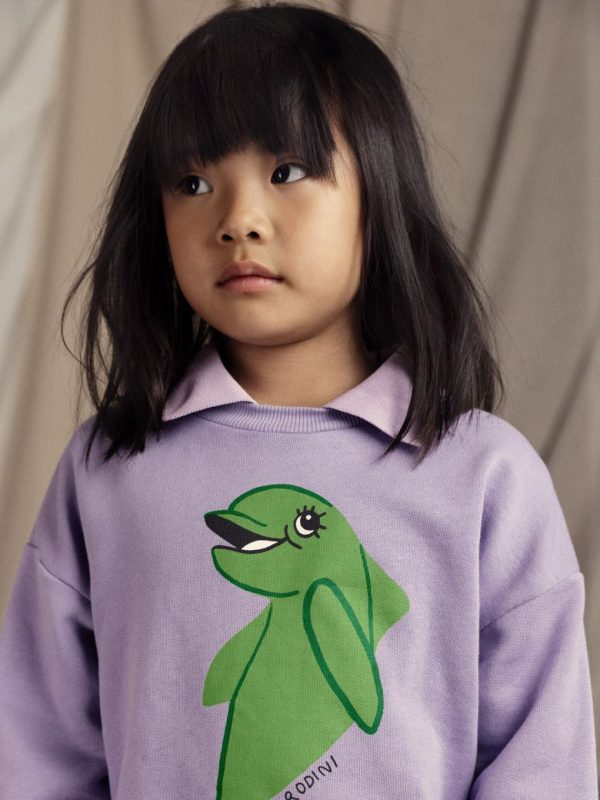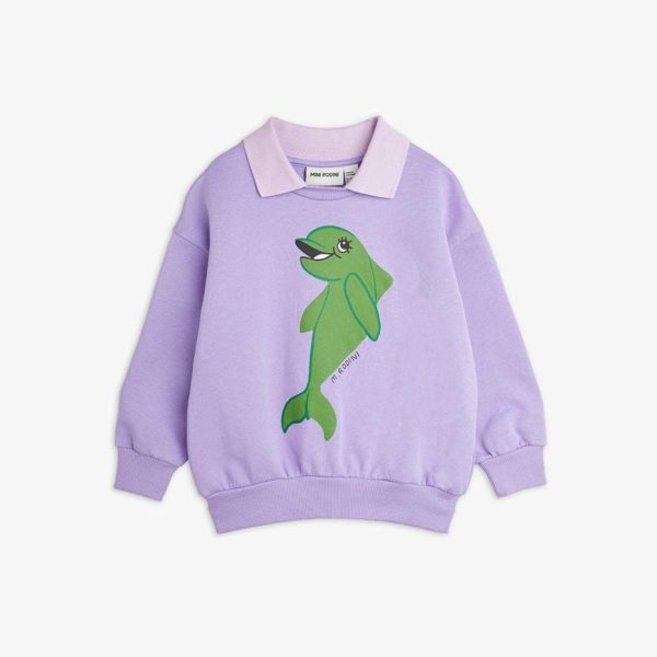 Sweatshirt with a large Dolphin print on the chest, made from 100 % GOTS certified organic cotton. Designed with a pointed collar and cut for a relaxed fit with dropped shoulders. Finished with ribbed elastic trims.