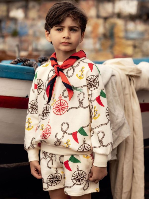 Sweatshirt with an all over Nautical print, made from 100 % GOTS certified organic cotton. Designed for a relaxed fit with dropped shoulders and finished with ribbed elastic trims and a M.Rodini logo print on the chest.