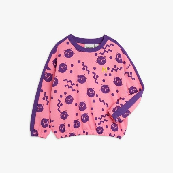 Sweatshirt made of 100 % GOTS Certified organic cotton. Cut with dropped shoulders for a relaxed fit. Designed with an all over Squiggly cats print and contrasting panels. Finished with an M embroidery in front.