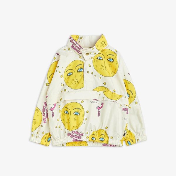 Windbreaker made from 100 % recycled polyester featuring an all-over Moon print. The jacket has a front pocket, a hood and is elastic at the bottom and by the cuffs. It can be folded into a bag which has a light blue strap. The fabric is water repellent with a BIONIC-FINISH® ECO coating that is free from hazardous chemicals like formaldehyde and parafusn.