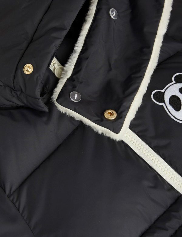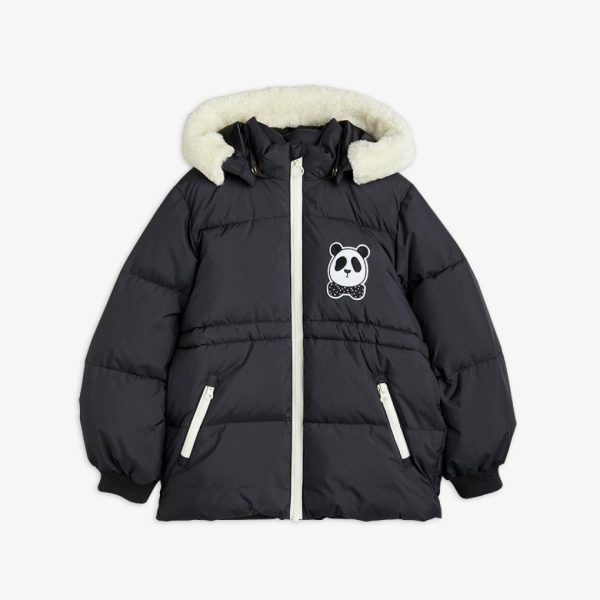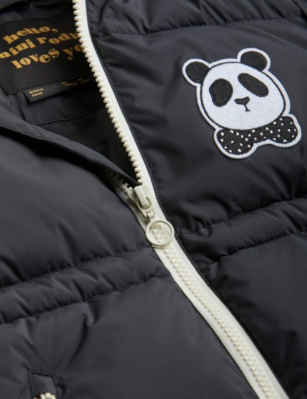 Water repellent and windproof puffer jacket with an embroidered Mini Rodini Panda patch, made from 100 % recycled polyester. The jacket is designed with two pockets, adjustable waist and satin lining. Poison free water repellent BIONIC-FINISH® ECO coating