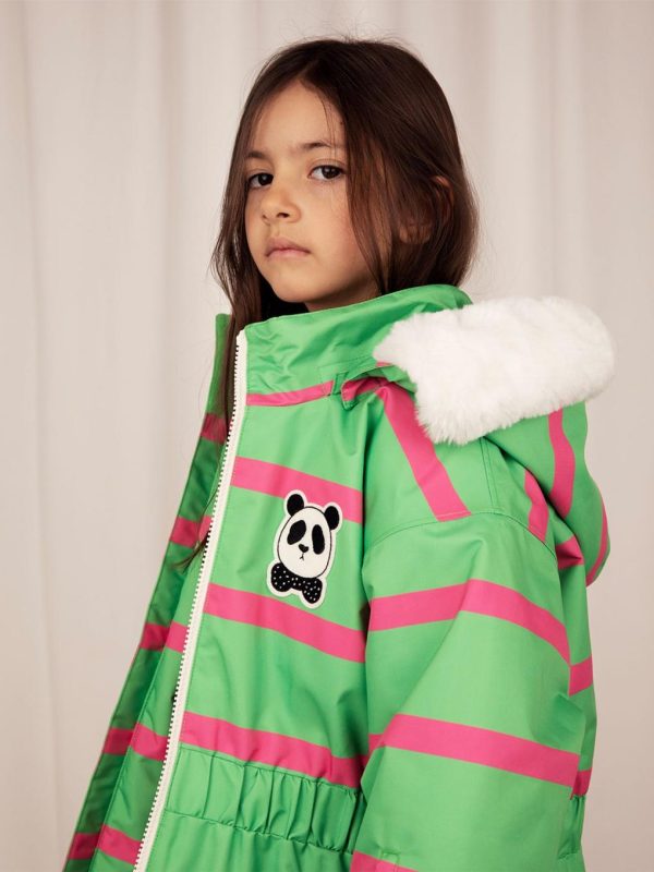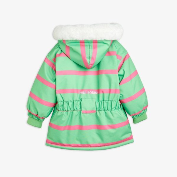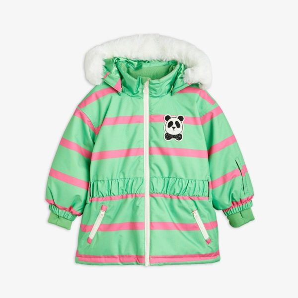 Green wind and waterproof jacket for city, snow and skiing, made from 100 % recycled polyester. The jacket is designed to be especially durable and functional and withstand the toughest weather and long days out in the snow or on the slopes. Featuring snow locks at sleeve endings, a pocket on the arm for your ski pass and an adjustable waist with belt loops. Remove the hood for a more city look!