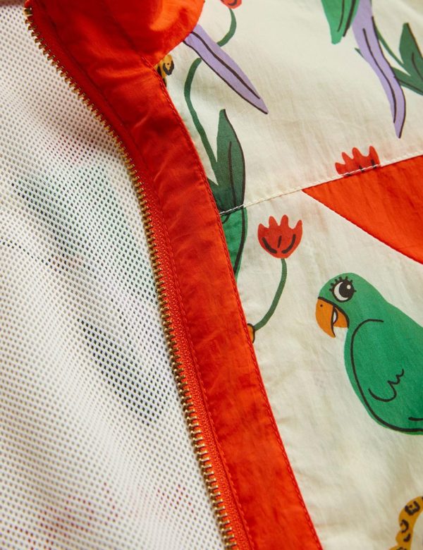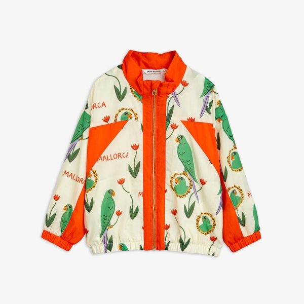 Track jacket with an all over Parrots print, made from 100 % recycled nylon. Designed with contrasting panels, elastic sleeve ends and bottom hem and a zip closure with a foldover at the top to prevent pinching. The jacket is lined with mesh and features a water repellent BIONIC-FINISH® ECO coating that is free from fluorocarbons, formaldehyde and paraffin.