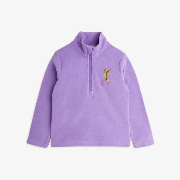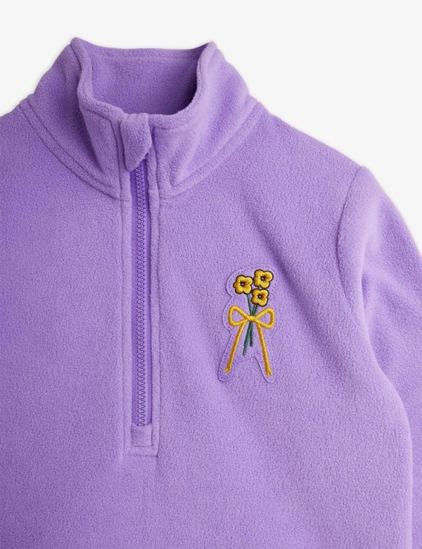 Half zip microfleece top with an embroidered Winter Flowers felt patch, made from 100 % recycled polyester. Designed with a high neck and half zip with a foldover at the top to prevent pinching.