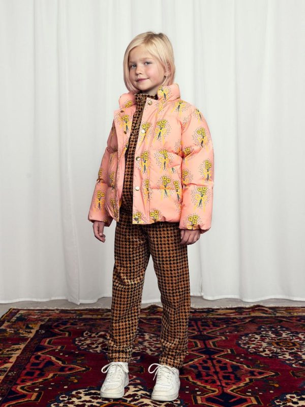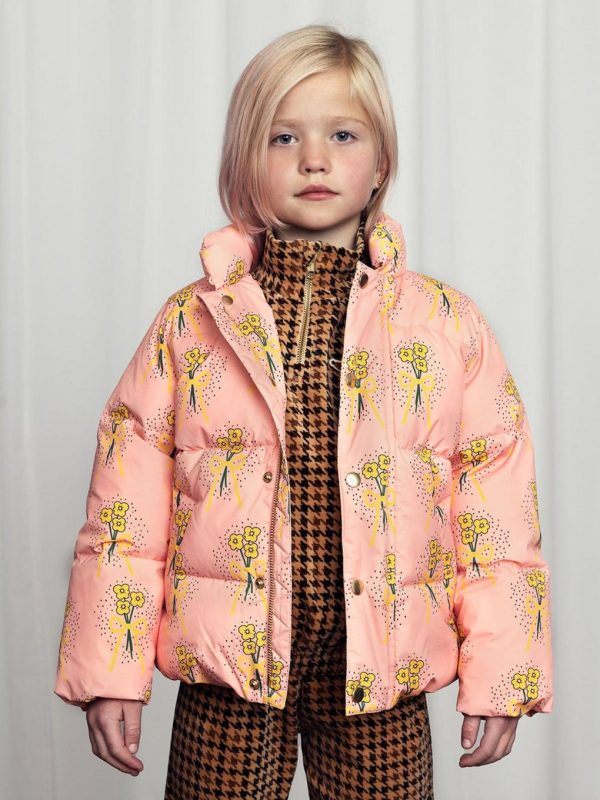 Water repellent and windproof puffer jacket with an all over Winter Flowers print, made from 100 % recycled polyester. Designed with a high collar, two pockets and satin lining. Finished with a Mini Rodini M label.