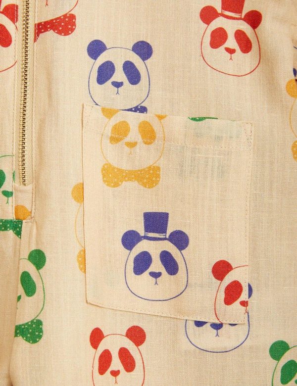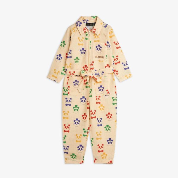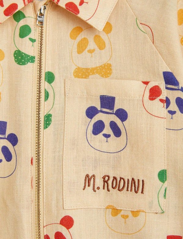 Jump right into this stylish jumpsuit covered in the iconic Mini Rodini Panda print! Made from a blend of linen and organic cotton. The jumpsuit features a classic collar, two pockets on the trousers, a zipper in the front, tie belt at the waist and a chest pocket with M.Rodini embroidered on it.