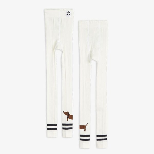 Tights with two stripe detailing and dog motif made from a GOTS certified organic cotton and recycled polyamide blend.