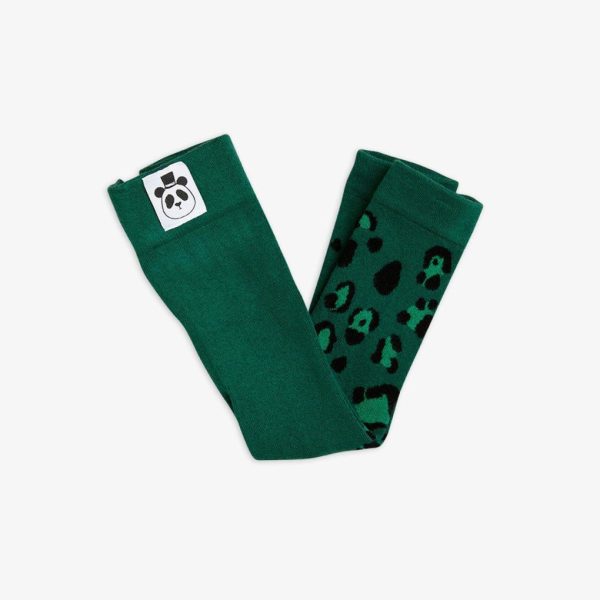 Green Leopard tights made from GOTS certified organic cotton with a hint of stretch. The tights are designed with a soft elastic waist and a sewn on Mini Rodini Panda logo in the front.