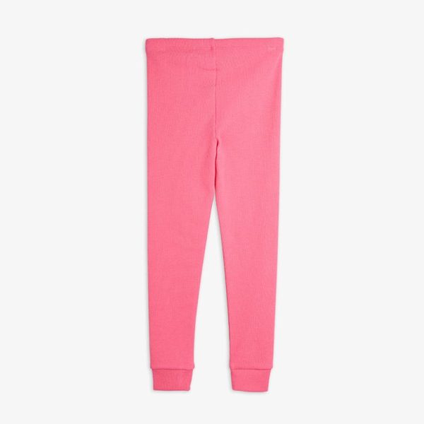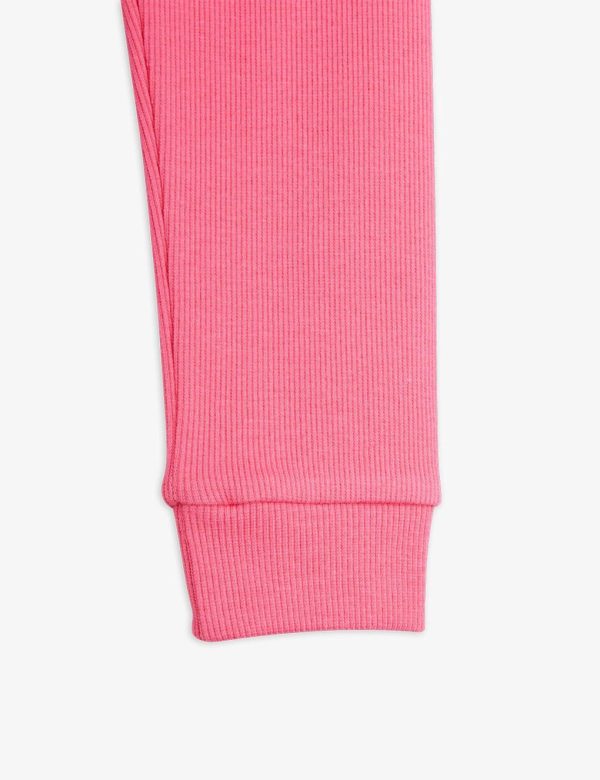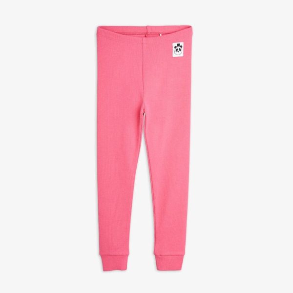 Ribbed leggings with a Mini Rodini Panda label, made from 100 % GOTS certified organic cotton. Designed with an elastic waistband and cuffs at leg ends.