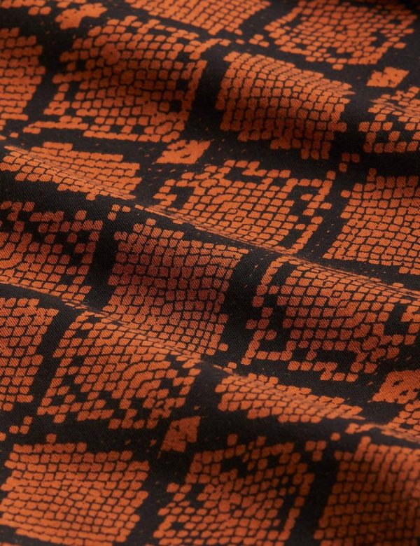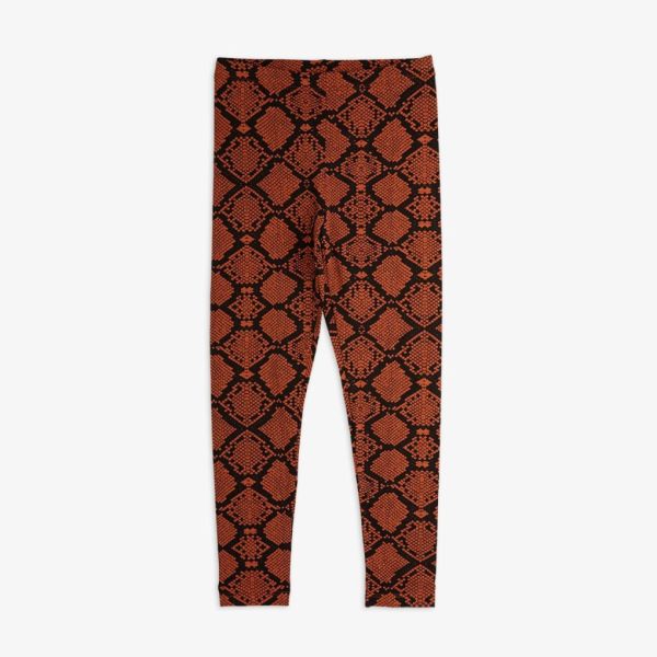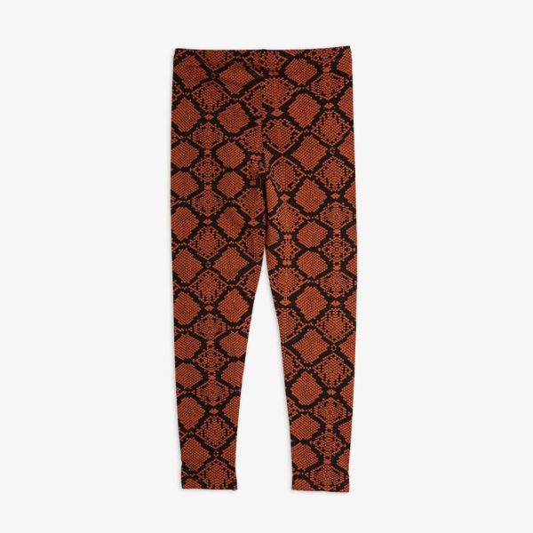 Brown leggings with Snakeskin print, made from GOTS certified organic cotton with a hint of stretch. The leggings are designed with a soft elastic waist.