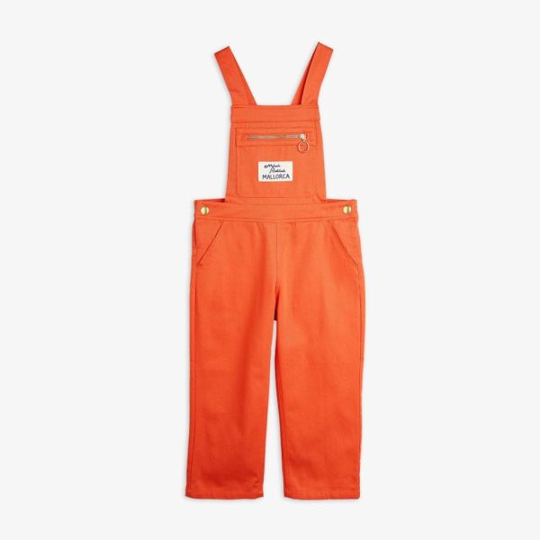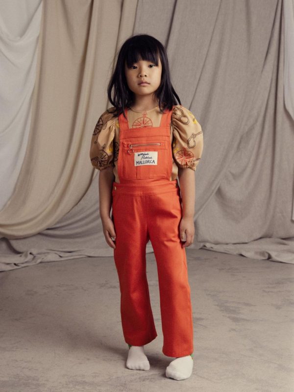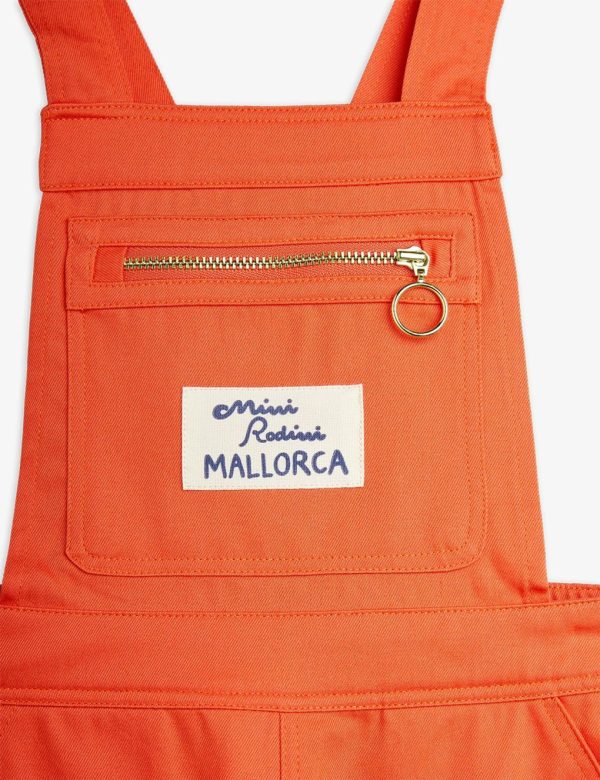 Straight fit dungarees made from 100 % GOTS certified organic cotton twill. Designed with chest and back pockets with zipper closure, an elastic waistband in the rear and two front pockets. Finished with a Mallorca patch and metal hardware.