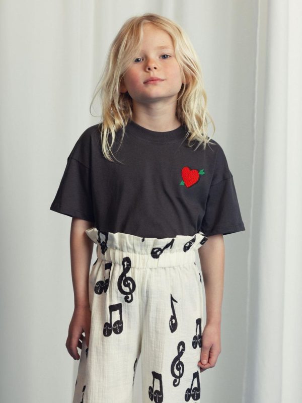Kids paperbag trousers in an all over note pattern, made from 100% GOTS certified organic cotton. Designed in a straight loose fit for great comfort.Features