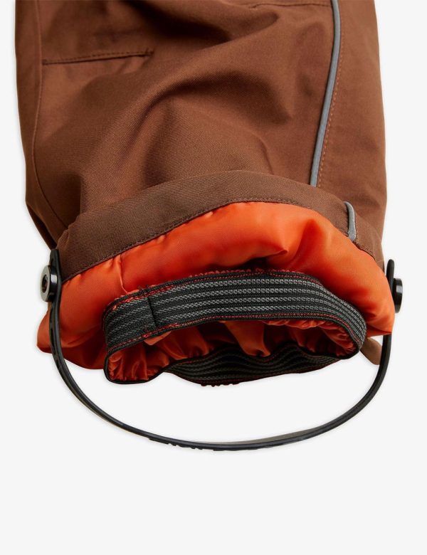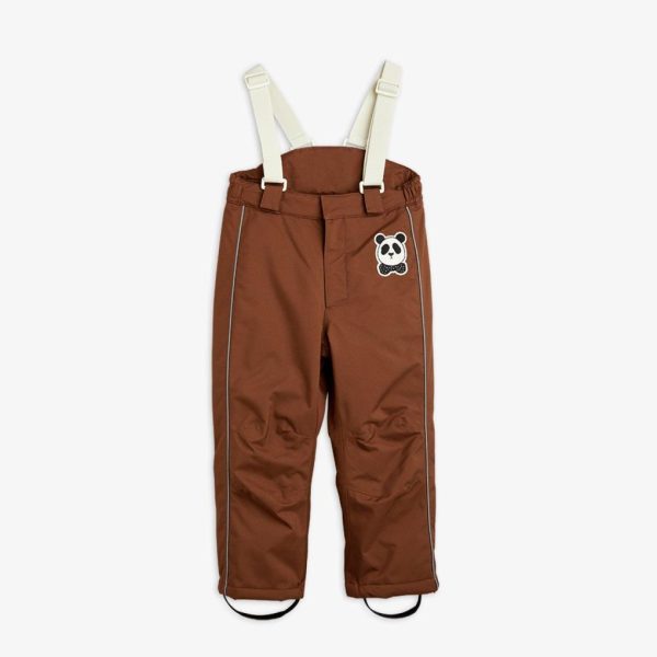 Water- and windproof heavy duty padded ski trousers, made from 100 % recycled polyester. Features taped seams, reflective piping along the legs as well as snow locks at leg ends. Finished with an embroidered Mini Rodini Panda patch. Designed to be especially durable and functional to withstand the toughest weather and long days out in the snow or on the slopes.