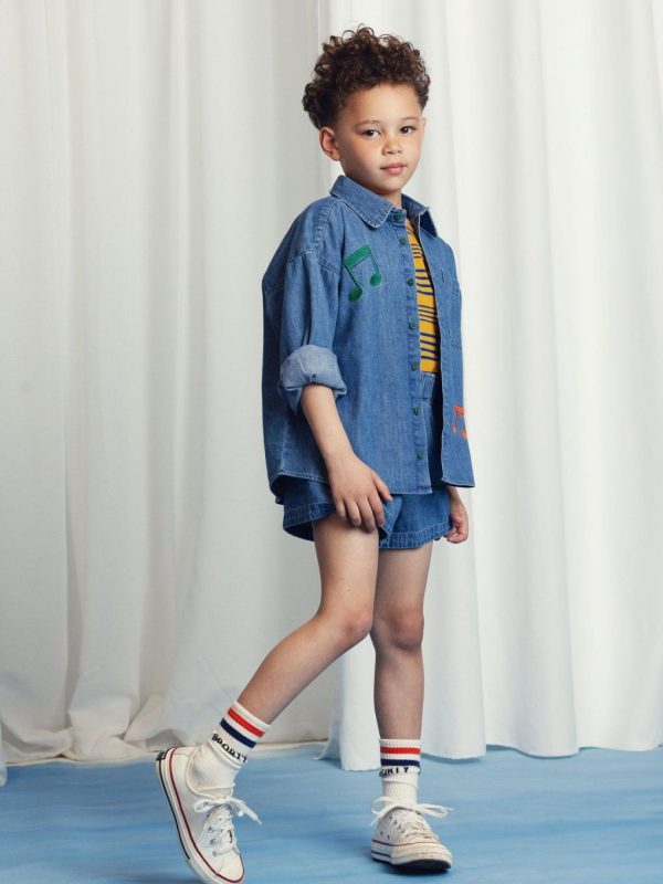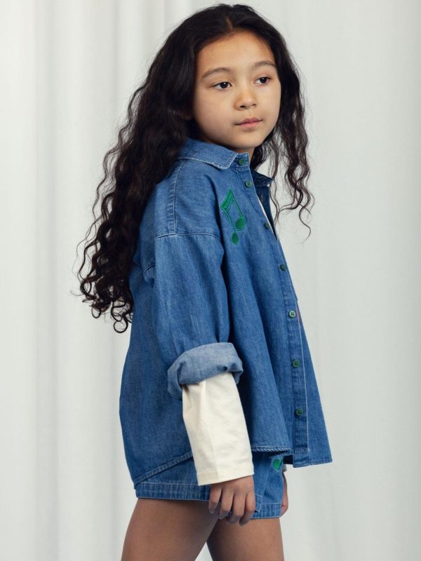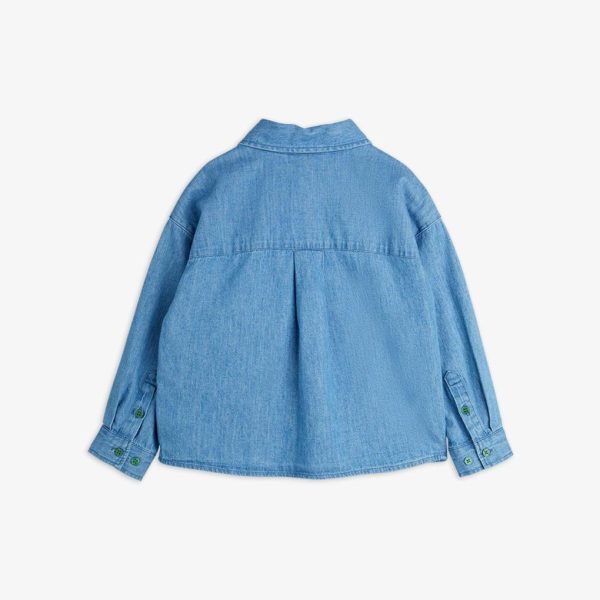 Lightweight denim shirt made from 100 % GOTS certified organic cotton. Designed with a classic collar, chest pocket and green buttons for some extra style.Features