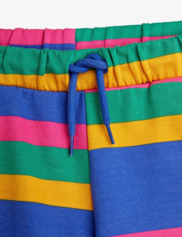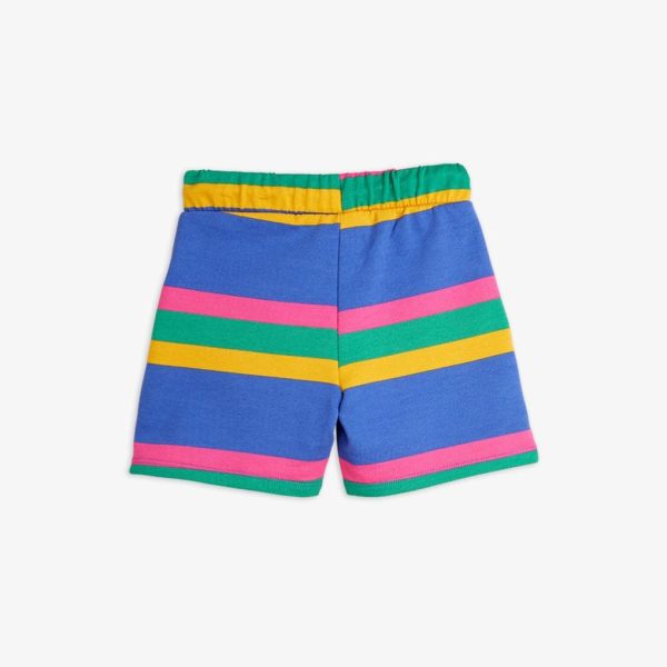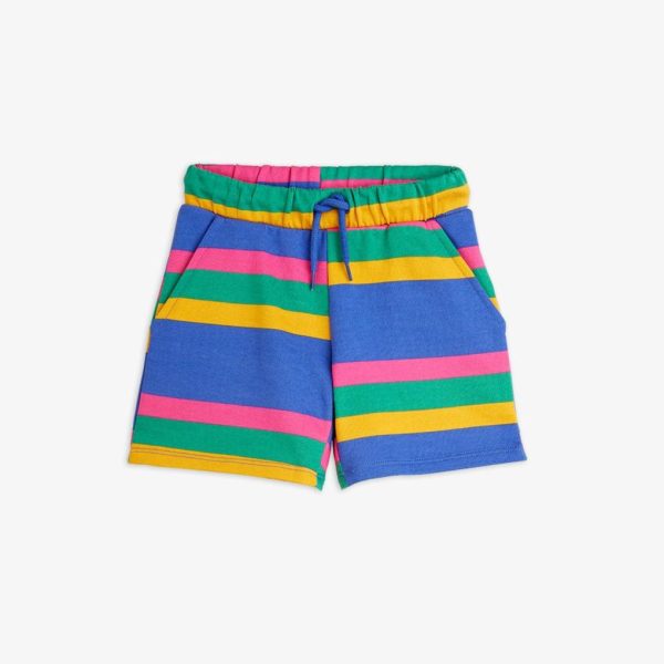 Upcycled sweatshorts with an all over Blue Stripe print, made from 100 % GOTS certified organic cotton. Designed with side pockets and a drawstring waist.
