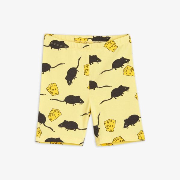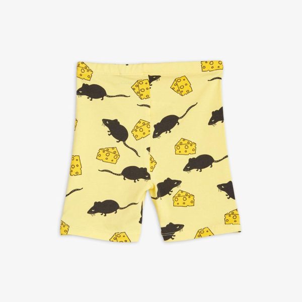 Yellow biker shorts with Mouse print for kids, made from certified organic cotton with stretch.