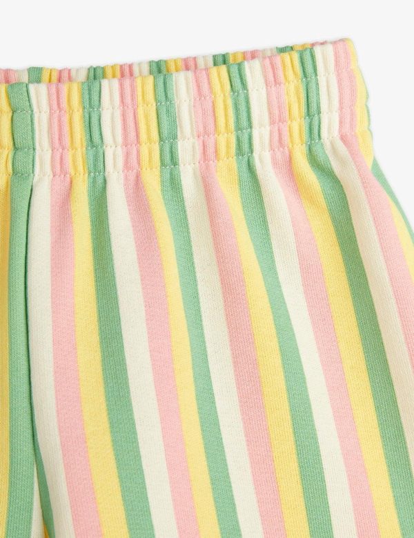 Upcycled sweatshorts with an all over Pastel Stripe print, made from 100 % GOTS certified organic cotton. Designed with an elastic waistband.