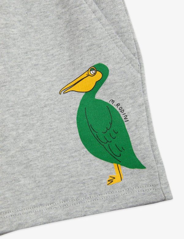 Grey melange sweatshorts with a Pelican print on the left leg made from 100 % GOTS certified organic cotton. The shorts feature a elastic drawstring waist and two front pockets.