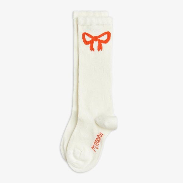 Pair of knee-high socks made from a GOTS certified organic cotton and polyamide mix with stretch. The socks are soft to the touch, comfortably stretchy and have reinforced toe caps and heels. M.Rodini is printed under each foot.Features
