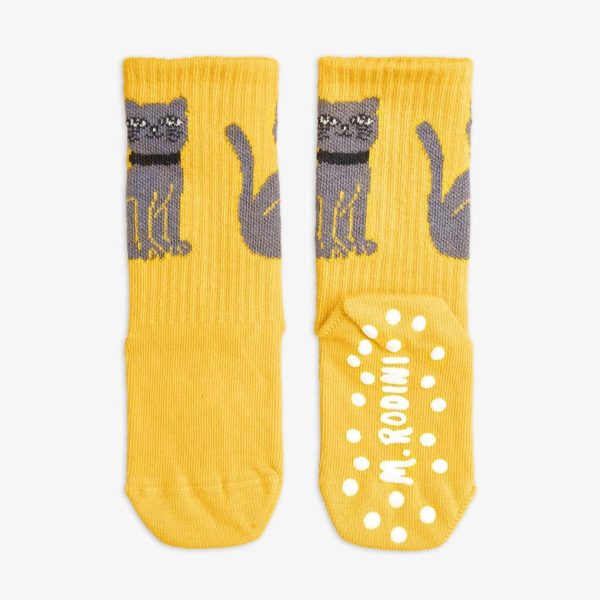 Anti-slip socks made from GOTS certified organic cotton with stretch. Designed with reinforced heels and toe caps. Silicone bubbles are printed under each foot to prevent slipping.