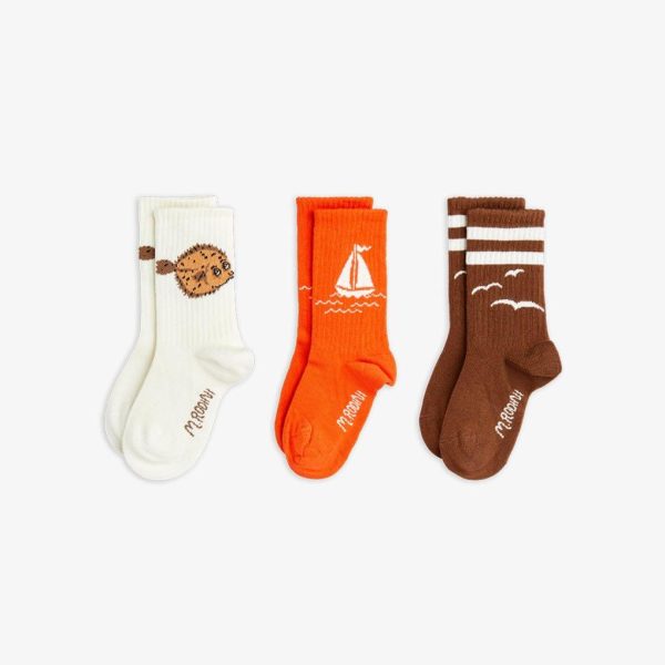 Three pack of socks made from a GOTS certified organic cotton and polyamide mix with stretch. The socks are soft to the touch, comfortably stretchy and have reinforced toe caps and heels. M.Rodini is printed under each foot.Features