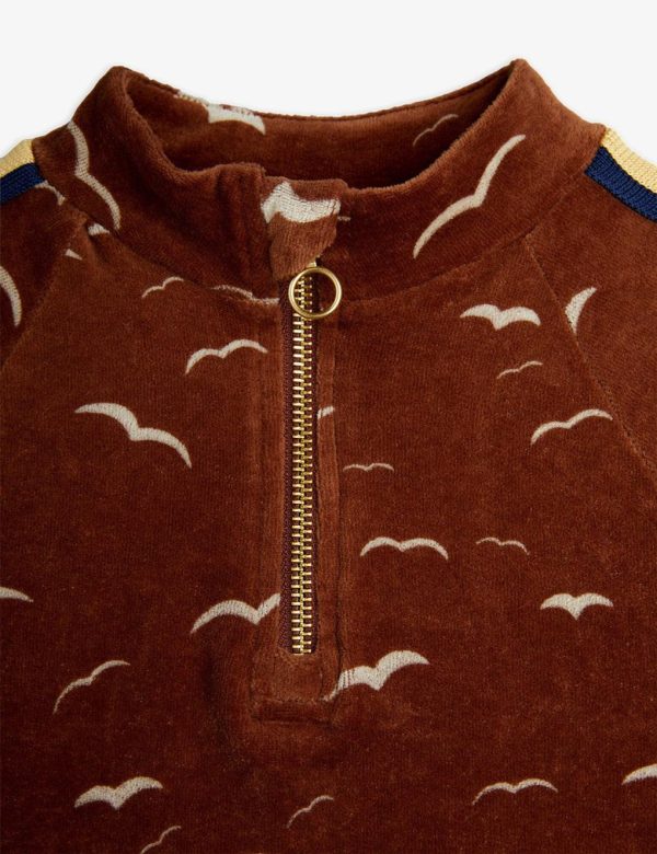 Half zip top in soft velour fabric, made from 100 % GOTS certified organic cotton. Designed with panels along the sleeves for the perfect mix between retro and sporty.Features