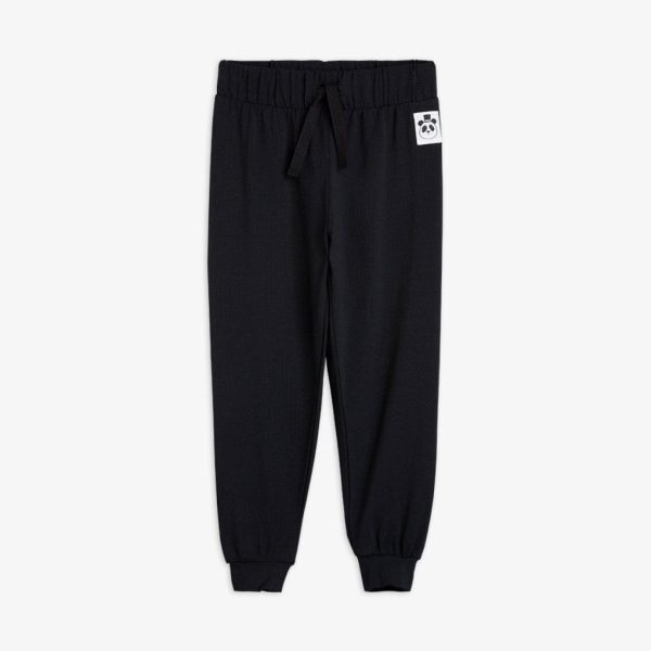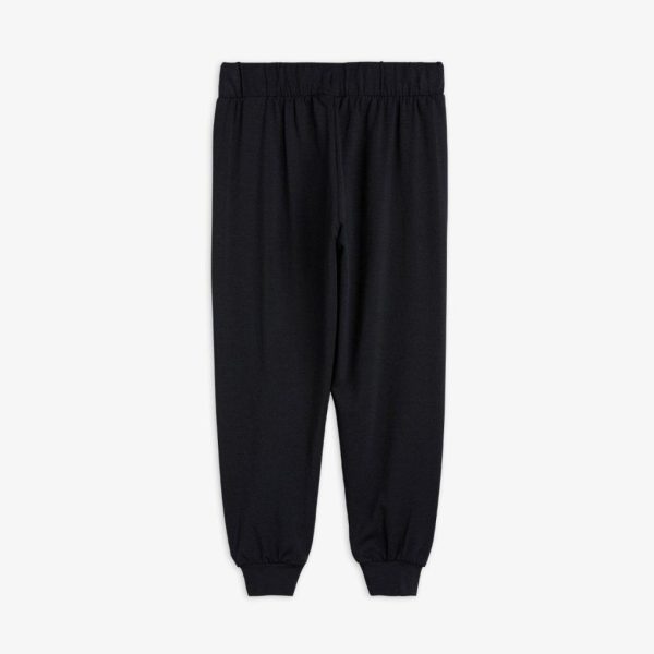 Soft jersey trousers in black made in soft TENCEL™ Lyocell with a hint of stretch for comfort. The trousers are designed with a soft elastic drawstring waist, cuffs at the bottom as well as a sewn-on Mini Rodini Panda label in the front.